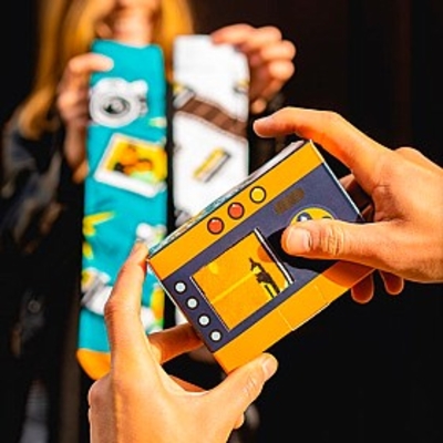 Este pack de calcetines originales tiene forma de cámara de fotos y viene con dos pares de calcetines con estampados diferentes.