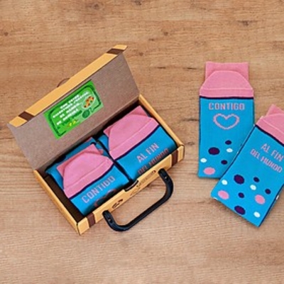 Declara tu amor eterno con estos originales calcetines embalados en una maletita de cartón.