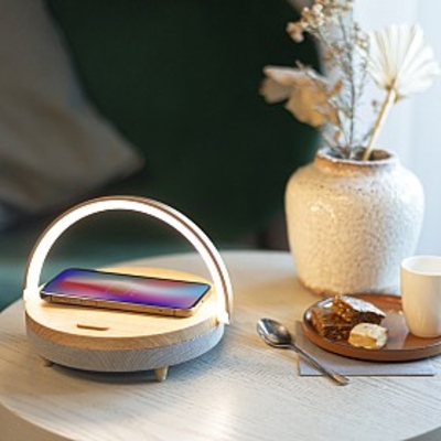 Este cargador inalámbrico es 3 en 1, tiene lámpara led, altavoz bluetooth y un diseño superchulo.
