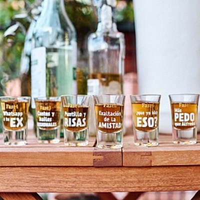 ¡ El puntillo está a 6 tragos de la resaca! Conoce en que fase de la borrachera estás con este set de 6 vasos de chupito.
