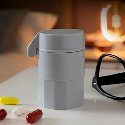 Este pastillero de bolsillo es el más práctico que vas a encontrar. Tiene cortador, triturador, compartimento para meter pastillas y hasta un mini vaso para el agua.