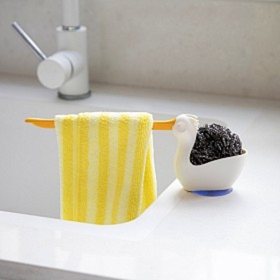 Pon un toque original a tu fregadero y mantenlo súper ordenado con este soporte para estropajo y bayeta con forma de pelícano.