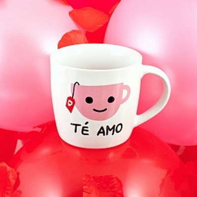 Díselo con un poquito de té y la taza Té amo. Es blanca, muy original y romántica, y tiene una tacita con carita sonriente dibujada.