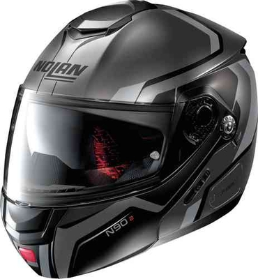 Nolan N90-2 Meridianus N-com hjelm Dette er Nolans entry-level flip up hjelm. Det er kendetegnet ved et sportsinspireret design og dets generøse tekniske egenskaber. Dobbelt P/J homologation, VPS solcreme, en eksklusiv dobbelt-action hage Guard åbning mekanisme, Microlock2 Dobbelt-håndtag fastholdelse system med micrometric justering og sat op til N-com kommunikationssystem gøre N90-2 en interessant flip op hjelm i både scooter og motorcykel sektorer.Funktioner: Visir: lavet af lexan, ridsefast belagt Solskærm UV 400: mørk gensian, lavet af lexan, ridsefast belagt Interiør: aftageligt og vaskbart Lukning: Microlock ² lukning for maksimal sikkerhed Ekstraudstyr: Dual Action hage spænde med enhåndsbetjening, der minimerer risikoen for utilsigtet åbning, Chin rest Lock til