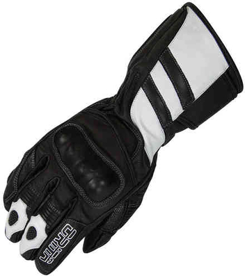 Orina Vento Damer Motorcykel Handsker Disse kvinders handsker er særligt slående på grund af deres slående sort og hvid design. På trods af den behagelige bærekomfort på grund af den slanke pasform, tilbyder Vento Ladies handsker mange sikkerhedsfunktioner. Meget slidstærk Super Fabric beskytter fingrene og kuglen i hånden, mens beskyttere dækker knoerne på baghånden og kanten af hånden. Funktioner: høj kvalitet Technalin.gold koskind sporty, elegant design Velcrolukninger på manchetten og håndleddet Materiale fordoblinger Ankel beskytter Polstring på manchetten Super Fabric (TM) polstring på fingre og kugle af hånden Carbolex beskytter på kanten af hånden Stræk skær på fingrene præfabrikerede fingre for god pasform Indholdet: 1 par Orina Vento damer motorcykel handsker