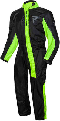 Rebelhorn Rejser Motorcykel Rain Suit Rebelhorn Travel er en ét stykke motorcykel regndragt, der vil forhindre dig i at blive våd, selv i kraftig regn.Funktioner: Vandtæt stof sikrer tørt interiør selv under ekstreme vejrforhold Laminerede sømme forhindrer vandlækager Reflekterende elementer forbedre synligheden af motorcyklist Holdbart og let at rengøre stof Krave færdig med sofr stof for mere bærekomfort Elastiske manchetter og talje kreditkort lomme på en venstre ærme Komfortabel og sikker lynlås, velcro og snap fastgørelse