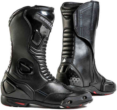 Rebelhorn Tur ST Motorcykel Støvler Rebelhorn Trip ST er gode støvler, designet til hurtige rides og også touring. Den højeste grad af beskyttelse og holdbarhed er sikret takket være den hårde hæl og ankel beskyttere, samt dobbelt og tredobbelt sømme. Funktioner: Unisex størrelsesområde Svedtransporterende, blød og åndbar 3D-masketype Hård hæl beskyttelse Hård ankelbeskyttelse Stivnet tå boks Dobbelt- og tredobbelte sting forbedrer holdbarheden Lang lynlås til at sætte på støvler nemt Velcro til at justere kalv omkreds Fleksible paneler, der sikrer fri bevægelighed Antibakterielt skær sikrer friskhed Reflekterende elementer for at forbedre synligheden Udskiftelige tå skydere forlænge levetiden af støvler Forstærkning til gearskifter Blød efterbehandling af top boot kant Gummisål EN 13634:2015