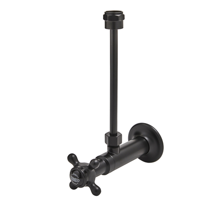 Esta llave de paso es perfecta para cerrar el paso del agua desde cualquier cisterna tradicional a su wc. Esta llave de cierre del paso del agua para cisterna de wc se caracteriza por su diseño tradicional y cuenta con un elegante acabado de color negro opaco altamente resistente. Características: Acabado de color negro opaco Dimensiones: ancho. 205mm x pro. 147mm x alt. 60mm Diseño tradicional Fabricación en latón sólido Compatible con cisternas tradicionales para WC