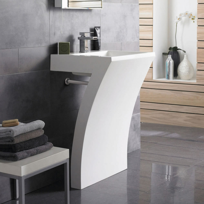 Lavabo Columna Número 7 de Resina Blanca Este espectacular lavabo columna para cuarto de baño será el punto de enfoque para cualquier espacio asegurando originalidad y diseño. Realizado con resina de la más alta calidad asegura un accesorio muy elegante y duradero para el cuarto de baño. Lavamanos con pedestal integrado Diseño moderno en forma de número 7 Lavamanos y pedestal en resina Lavabo compatibile con grifería monoforo Lavabo con rebosadero Seleccione debajo de la imagen principal para ver el dibujo técnico *N.B: Válvula de desagüe, sifón, grifería y accesorios no incluidos Lavabo parcialmente perforado para garantizar la precisión