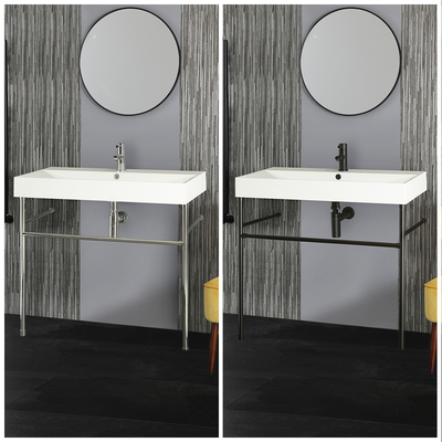 Cree un cuarto de baño impactante gracias a este elegante lavabo consola moderno de la gama Sandford. El lavabo consola está disponible en acabados de color cromado o negro