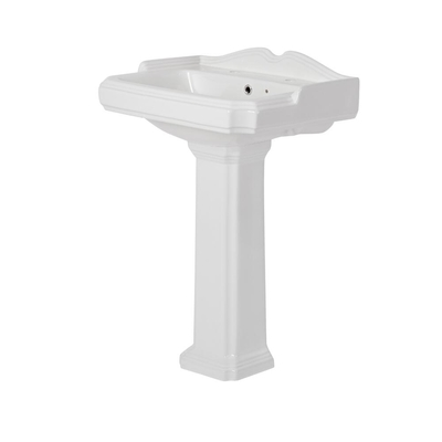 Cree un cuarto de baño con un look clásico que nunca pasará de moda con este elegante lavabo con pedestal de la gama Regent. El lavabo viene con 2 agujeros para la grifería y puede ser combinado con un grifo de agua fría y un grifo de agua caliente en estilo clásico. Además, puede ser combinado con cualquier inodoro o bidé de la gama Regent para crear un verdadero look clásico en su cuarto de baño. Combine con cualquiera de nuestros grifos individual es para crear un verdadero impacto visual en su cuarto de baño. Cree un look coordinado al combinarlo con cualquier artículo de la gama Regent. Características del lavabo Regent: Lavamanos con pedestal en cerandaacute;mica Diseandntilde;o tradicional Lavabo con dos agujeros para la griferandiacute;a Lavabo con 2 agujeros para la grifería Dimensiones del lavabo de 2 agujeros: ancho 590mm x prof. 495mm x alto 920mm Requiere una válvula de desagüe para lavabos con rebosadero Seleccione debajo de la imagen principal para ver el dibujo tandeacute...