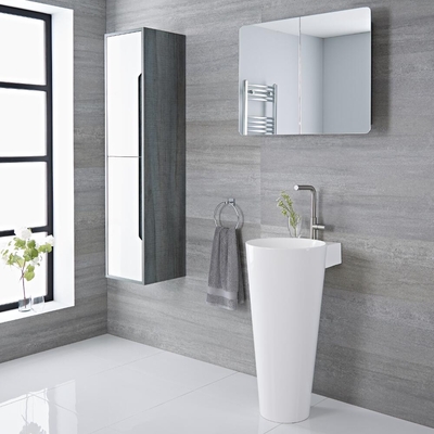 Este elegante lavabo de pie tótem, caracteriza modernas líneas con diseño cónico que son ideales para crear un cuarto de baño en estilo contemporáneo. Características: Dimensiones:850x 500mm.