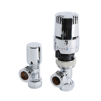 Estas elegantes llaves termostáticas angulares son la adición perfecta para crear completar el montaje de cualquier radiador o toallero y crear un look elegante al mismo tiempo. Este par de llaves cuenta con un diseño moderno que es extremadamente elegante y con un acabado cromado. Cuentan con un cabezal termostático cromado con cabezal de ABS cromado diseñadas para completar la instalación de cualquier radiador o toallero. Las llaves angulares termostáticas le permiten controlar la temperatura del radiador o toallero individualmente. Características de las llaves para radiador: Par de llaves en latón sólido acabado en cromo El cabezal de ABS con acabado en cromo permiten un sencillo funcionamiento < Li> La función termostática le permite controlar cualquier radiador o toallero de manera sencilla Perfectas para crear una temperatura perfecta en cada estancia, individualmente Compatible con cualquier radiador y radiador toallero estándar Llaves compatibles con tubos de cobre de 1...