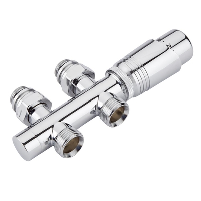 Este conjunto le proporciona con un conjunto de accesorios para completar la instalación de su radiador que crear un toque final muy elegante para su radiador toallero o radiador. Un conjunto completo con llaves rectas para entre-ejes de 50mm, cabezal termostático cromado y adaptadores que le permiten conectar su radiador o radiador toallero a cualquier tipo de tubería multicapa o de cobre de 12mm, 14mm, 15mm o 16mm. Las llaves para radiador son compatibles con cualquiera de nuestros radiadores con entre-eje de 50mm y son la solución perfecta para completar la instalación de cualquier radiador o radiador toallero. Gracias a su diseño con cabezal termostático, le permiten encender, apagar y controlar la temperatura del radiador manualmente y por ello es ideal para ayudarle a ahorrar energía. Características: Llaves con adaptadores para conectar su radiador a tuberías cobre o multicapa Los adaptadores PEX son compatibles con tubos multicapa del mismo tamaño Estructura en latón cromado s...