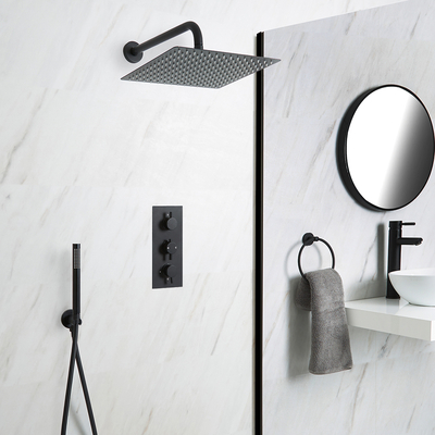 Dúchese en estilo y actualice su cuarto de baño creando un punto de enfoque gracias a este elegante conjunto de ducha termostático triple negro de 2 funciones completo con alcachofa de ducha cuadrada de 300x 300mm con brazo de ducha y telefonillo de ducha. Esta llave de ducha mezcladora termostática Nox se caracteriza por su elegante acabado de color negro opaco y cuenta con controles que son extremadamente simples de utilizar. Además, dispone de un dispositivo antiquemaduras que es perfecto para ayudarle a proteger a toda la familia contra quemaduras en la ducha y ayudarle a mantener una temperatura constante en la ducha. Puede ser modificada en el caso de requerirlo. La alcachofa de ducha ha sido realizada en acero inoxidable que le proporciona con una excelente cobertura de agua y viene completa con un brazo de ducha en latón sólido. El telefonillo de ducha le proporciona con una ducha extremadamente refrescante y es perfecta para enjuagar su ducha o enjuagarse el cabello. Con esta...