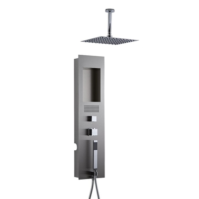 Lleva el estilo de diseño a tu baño y disfruta de una lujosa experiencia de ducha con el panel de ducha termostático empotrado Lisse, completo con cabezal de ducha cuadrado de 200 mm. El elegante panel de ducha cuenta con un espacio de almacenamiento integrado para tus básicos para la ducha. También incorpora jet corporal y teleducha con flexo. Las manijas cuadradas modernas brindan un control sin esfuerzo. El cabezal de ducha cuadrado, completo con brazo de techo, brinda cobertura de agua con efecto lluvia para una ducha relajante y relajante. También cuenta con boquillas de silicona para eliminar fácilmente cualquier depósito de cal, manteniendo el cabezal de la ducha a pleno rendimiento. Características de la torre de ducha termostática Lisse: Dimensiones del panel: 220 mm de ancho x 900 mm de alto Dimensiones del cabezal de ducha: 200 mm x 200 mm Dimensiones de almacenamiento integrado: 150 mm de ancho x 250 mm de alto Diseño oculto para una apariencia contemporánea y minimalista Control d...
