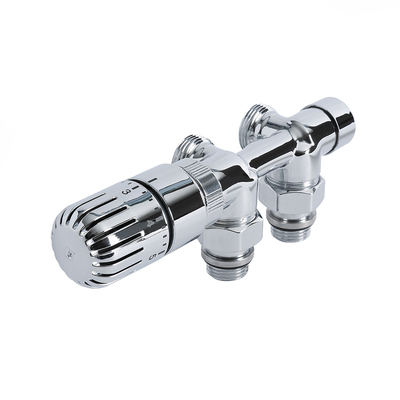 El conjunto de llaves termostáticas angulares para radiador le aseguran crear un accesorio lujoso que le permite conectar su radiador o toallero a sus tuberías de manera elegante. Este conjunto incluye un adaptador europeo que es compatible con cualquier tubería multicapa existente de 14mm. Gracias a su diseño, le permiten encender, apagar y controlar la temperatura del radiador manualmente y por ello es ideal para ayudarle a ahorrar energía. Características: Par de llaves termostáticas angulares para radiador Acabado cromado extremadamente duradero Material de fabricación: latón Diseño moderno Llaves angulares Llaves termostáticas Controle la temperatura y ahorre energía Controle la temperatura de su espacio manualmente Compatible con cualquier tubería multicapa de 14mm Garantía: 3 años N.B: Estas llaves no son bidireccionales: el lado con la llave termostática (cabezal termostático) debe ser posicionado en el lado del paso del agua y el detentor en el lado de retorno.