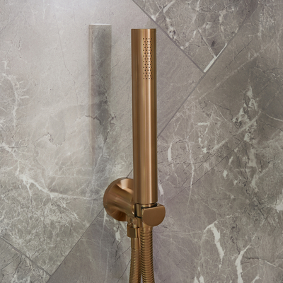 Cree un look moderno en su cuarto de baño de manera extremadamente sencilla gracias a este telefonillo de ducha redondo, complete con soporte mural y codo de salida integrado. Este termostato de ducha ha sido fabricado en latón sólido altamente duradero y este kit de ducha con telefonillo de ducha se caracteriza por su diseño contemporáneo y por su acabado que es altamente resistente. Este telefonillo de ducha le proporciona con una ducha extremadamente refrescante mientras que le permite guardarla en el soporte cuando no esté en uso y crear un look elegante. Combine con otros artÃculos con el mismo acabado de la gama Otto y cree un cuarto de baño moderno y elegante. CaracterÃsticas: Diseño elegante perfecto para espacios modernos Acabado de color cobre satinado altamente duradero Telefonillo de ducha realizado de latón sólido Incluye un flexo de ducha en latón de 1, 75m, soporte mural y codo de salida Compatible con sistemas de fontanerÃa domésticos y comerciales Racor de entrada de 1/2" Presió...