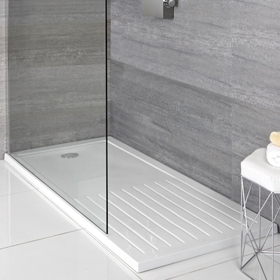 Este elegante plato de ducha de 1600x 800mm es ideal para cualquier proyecto de reforma del cuarto de baño ya que asegura una instalación mucho más simple y segura, ofreciéndole un producto extremadamente duradero. Puede ser cortado para ajustarse a cualquier espacio y ha sido realizado de un polímero de resina de piedra y por ello pesa 60% menos que cualquier otro plato de ducha convencional. Características Plato de ducha rectangular de 1600x 800mm. Plato de ducha realizado de polímero compuesto de resina de piedra con acabado efecto piedra. Plato de ducha plano. Plato de ducha con profundidad de 45mm. Producto fabricado conforme a la EN14527:2016+A1:2018. Fabricante registrado ISO9001 Marcado CE/UKCA Realizado con materiales sin ftalatos de aprobación WRAS. Compatible con cualquier válvula de desagüe de 90mm (no incluida). Sifón, válvula de desagüe, ducha y grifería no incluidos. Opción de varios tamaños. Seleccione debajo de la imagen principal para ver la ficha técnica Garantía: 10 años.