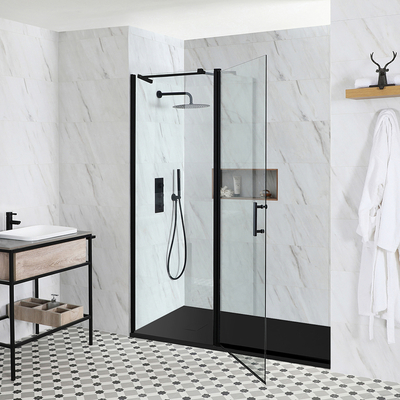 Renueve su cuarto de baño y agregue un toque de estilo con la puerta de ducha con bisagras completa con plato de ducha efecto pizarra y válvula de desagüe de vaciado rápido de la gama Nox. Esta puerta de ducha está disponible en una variedad de tamaños para asegurar adaptarse perfectamente a cualquier cuarto de baño e incluye un plato de ducha que viene en una variedad de acabados: antracita, gris claro y blanco
