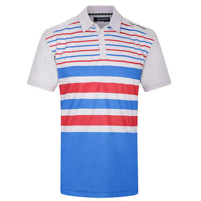 This fantastic polo shirt has performance in mind for playing at the highest level of golf. Constructed with a stretch polyester fabric for freedom of movement, and is moisture-wicking and breathable for fewer distractions as you perform. It features an adjustable button placket for cooling and offers UV protection to keep your skin safe from harmful UV rays. The shirt is highlighted with bold stripes and a Benross brand logo on the left shoulder for tour authentic appeal.