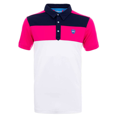 Stay cool and comfortable during your round of golf, with this modern colour block polo shirt from Bunker Mentality. Constructed with a high-performance CMAX fabric, which offers moisture-wicking comfort and breathability, to offer less distraction as you play. To ensure an even better performance the shirt has a high stretch. Allowing you to swing freely during the golf swing. Plus offers an excellent SPF 50+ sun protection rating which is perfect for playing the outdoor sport of golf.