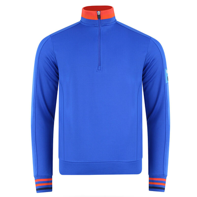 This fleece lined mid-layer has a 360-degree stretch to give you greater mobility and movement as you play golf. The garment has a 1/4 zip opening and has been styled with bold colour accents on the collar and cuffs. This has been designed to keep you warm with moisture wicking properties to ensure you remain dry and less distracted during your round and is branded with discrete bunker embroidered logo on the front panel, back neck and right sleeve.