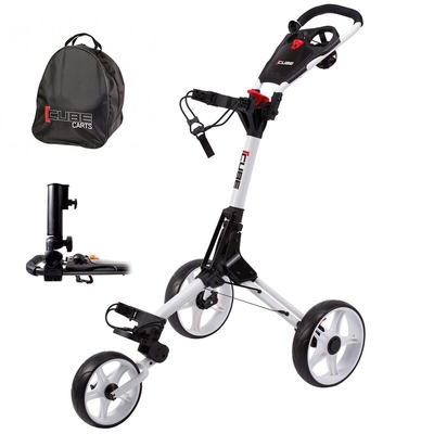 The CUBE 3 trolley is comfortable to handle & once loaded with a bag, is light & safe to manoeuvre. It also comes complete with a storage box, bottle holder, scorecard holder, ball holder & a ball marking alignment system. Plus the bundle deal comes complete with an umbrella holder & matching cover, everything you need for a more enjoyable round of golf. ...