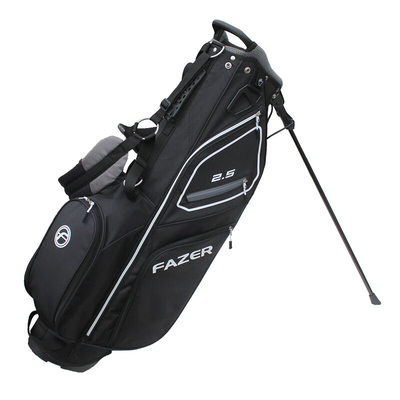 The Fazer 2.5 Stand Bag is packed with features for your convenience, comfort & enjoyment while out on the golf course. Organisation of your clubs & gear is easily done thanks to the 7", 4 way graphite friendly separator top & 3 full length club dividers. Apparel & accessories are taken care of with the 5 zippered pockets that include a full length clothing pocket & velour lined valuables pocket. Also included is a hydration bottle sleeve.