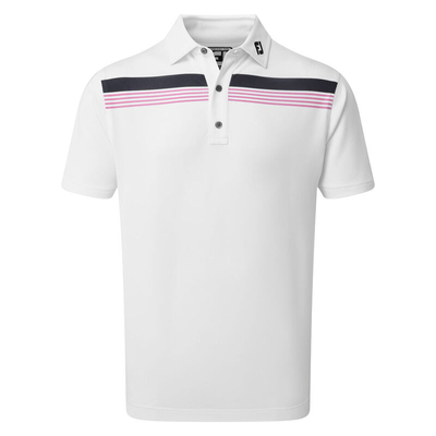 FootJoy Chest Band Polo Shirt, Male, White/Navy/Ice Berry, Large