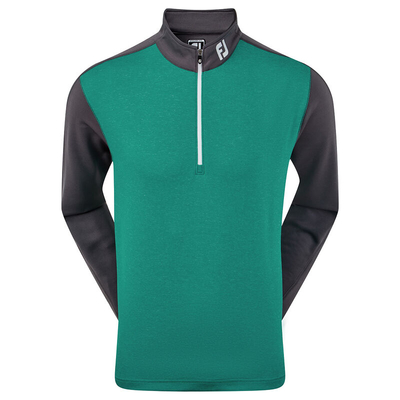 Give your game the performance it deserves with this fine quality layer from premium brand FootJoy. It has a double knit fabric construction for warmth and is stretchy to move with the body freely during the golf swing. It has moisture-wicking technology to draw access moisture away from the body, plus is easy care for fewer distractions during your game of golf. The garment has a 1/2 zip opening for adjustability and has a heathered fabric appearance with modern colour block styling.