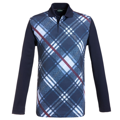Extravagant checks The men's long-sleeved polo shirt made from dry comfort jersey stands out with its diagonal check print & the matching ribbed collar. Further highlights include the embroidered golfer with contrasting edging & the personalised GOLFINO buttons.