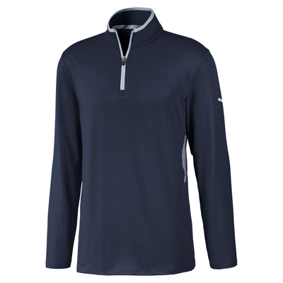 This high-performance layer offers warmth and comfort as you play your game of golf. The fabric has moisture-wicking properties, which draws moisture away from the body for rapid moisture evaporation and less distraction. The design has been constructed with stretch fibres to ensure a top performance as you play golf. Other features include a 1/4 zip opening with contrast colour binding and side panels. This garment is a perfect addition for every golfer and is highlighted with a PUMA Cat on the left sleeve.
