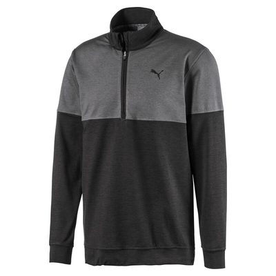 Play more comfortably in the wind with this modern styled mid-layer garment from PUMA Golf. Engineered with stretch performance fabrics to ensure you can move freely during the athletic movements of the golf swing. It offers warmth thanks to a brushed back fabric & has elasticated cuffs & hem to lock in your body warmth. The design features a 2-tone clour blocking with a half-zip opening for adjustable cooling, plus is highlighted with a PUMA Cat logo on the left chest.