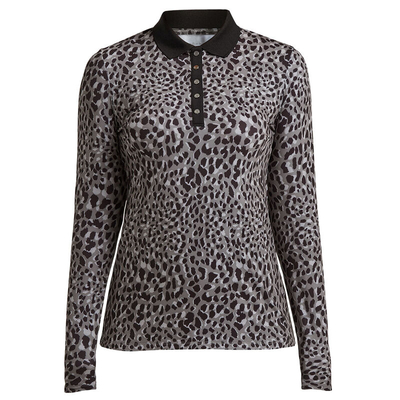 This female specialist polo offers style for the active sport of golf, highlighted with a leopard pattern & silver buttons at the neck for that special touch. It has a warm thermal jersey construction with a brushed inside lining & long sleeves to provide comfort on cooler days on the golf course. Plus has a high stretch to give you the freedom to move during the athletic movements of the golf swing. Lightweight & moisture wicking to ensure you remain dry & fully focused for your game of golf.
