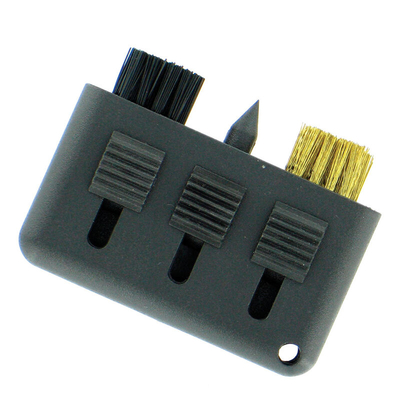 This compact, simple to use club cleaning device means that you can keep your golf clubs in the best possible condition. The 3-1 cleaner comes with a brass metal cleaning brush to clean your golf irons, & a less abrasive nylon wood brush which is ideal for cleaning your woods without scratching the paintwork. Plus to ensure your grooves are clean the device comes with a pointed groove cleaner which is ideal for getting debris out of your club grooves for better all-round performance.