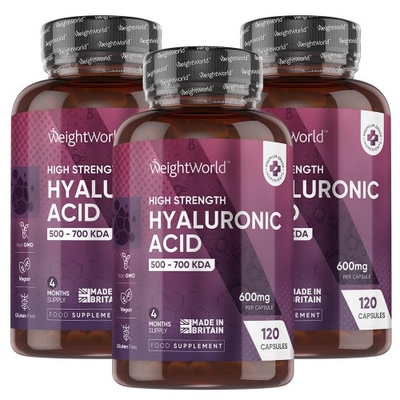 Hyaluronsyre-kapsler fra Weight World er et naturligt kosttilskud med 600 mg hyaluronsyre til hud, led og knogler. Kroppen producerer selv proteinstoffet hyaluronsyre til at give fugt, fylde og elasticitet til huden, ligesom det holder leddene 'smurte' og øjnene fugtige. Køb hos Weight World. ...